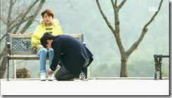 Sambil menangis,Dong Joo menemui Soo Wan. Dong Joo melihat tali sepatu Soo Wan yang terlepas.